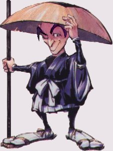 Mes parents, braves fermiers de Sasaki près de Kobe, me protégèrent beaucoup du monde extérieur. Mais bien vite je fus la cible de railleries de personnes malavisées. Pire, on constata mon inutilité pour la ferme ! Pour mon bien, ma famille me confia donc à des prêtres. Malgré leurs efforts répétés, ces professeurs ne m'apprirent que l'art de la fuite. Au lieu de l'étude au temple, je passais donc mes journées caché dans les forêts du Nord de Kobe. Là, par jeu, je suivais souvent des personnes à leur insu (enfin... quand je ne tombais pas des arbres pour ensuite me ramasser une correction méritée par ces personnes puis par les prêtres ;).